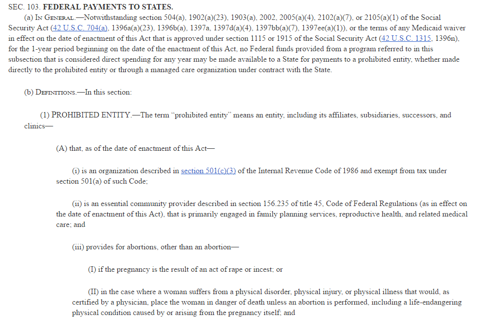 Reading through the AHCA. Say goodbye to Planned Parenhood.